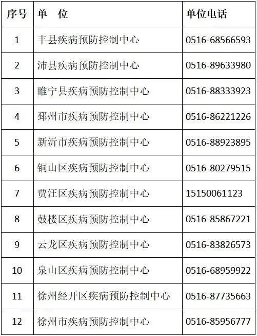 徐州市各县(市)、区疾病预防控制机构ag凯发旗舰厅的联系方式