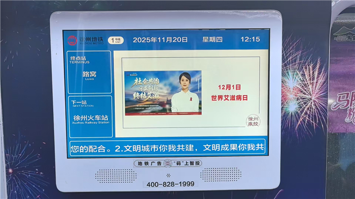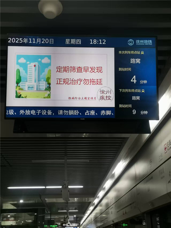 地铁作为我市的交通动脉,日均客流量大,覆盖人群广泛,是开展公众健康教育的重要阵地。徐州市疾控中心充分利用地铁媒体的独特优势,将流动的车厢和固定的站厅、站台屏幕转化为移动的健康课堂,使广大市民在通勤途中、出行间隙,便捷地获取权威、专业的防病知识。这种“寓教于行”的宣传模式,打破了传统宣传在时间和空间上的限制,不仅是将健康知识送入公共空间的简单举措,更是构建全方位、多层次、立体化健康科普网络的重要一环,彰显了疾控部门主动作为、服务民生的责任担当。